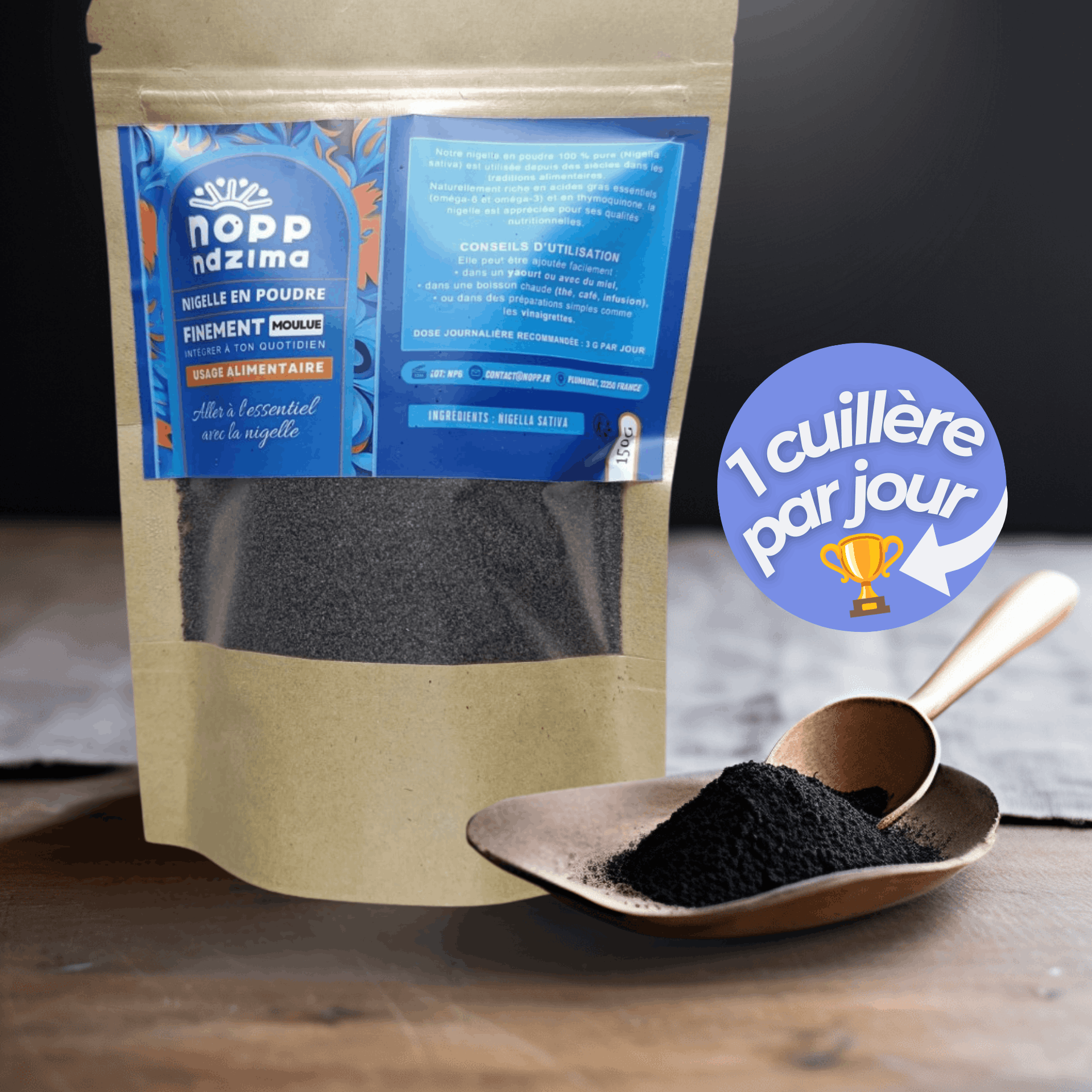 Notre poudre de nigelle 100% naturelle s’intègre facilement à vos repas. Une cuillère par jour suffit pour renforcer l’immunité, améliorer la digestion et soutenir l’équilibre du corps.